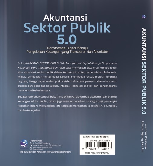 Buku AKUNTANSI SEKTOR PUBLIK 5.0: Transformasi Digital Menuju Pengelolaan Keuangan yang Transparan dan Akuntabel menyajikan eksplorasi komprehensif atas akuntansi sektor publik dalam konteks dinamika pemerintahan Indonesia. Melalui pendekatan multidimensi, karya ini membedah fondasi teoretis, kerangka regulasi, hingga implementasi praktis sistem akuntansi pemerintahan—termasuk transisi dari basis kas ke akrual, integrasi teknologi digital, dan penganggaran berorientasi keberlanjutan. Sebagai referensi esensial, buku ini tidak hanya relevan bagi akademisi dan praktisi keuangan sektor publik, tetapi juga menjadi panduan strategis bagi pemangku kebijakan dalam mewujudkan tata kelola pemerintahan yang efisien, akuntabel, dan berkelanjutan.