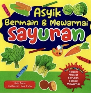 Buku Asyik Bermain dan Mewarnai Sayuran ini berisi 12 gambar sayuran dan khasiatnya,