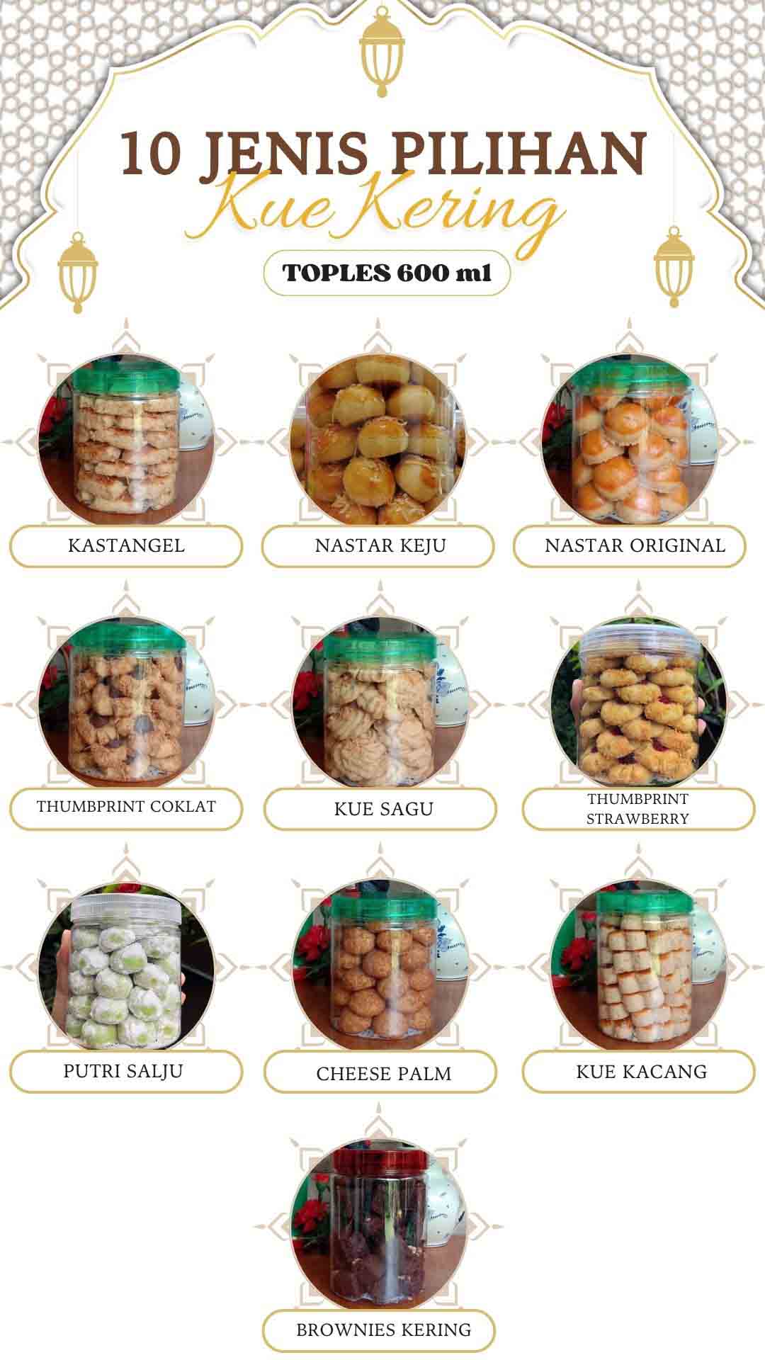 Tersedia 10 jenis kue kering pilihan :